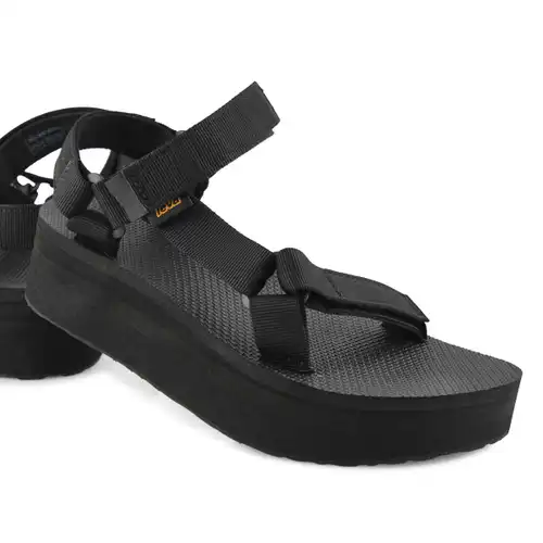 The FLATFORM UNIVERSAL black casual sandal from TEVA takes their iconic Universal to new heights. Sporting the same squishy EVA foam footbed and rugged rubber sole we have all come to love. Finished with earth-friendly Unifi® recycled polyester straps that stand up to abuse while keeping plastic waste out of landfills.