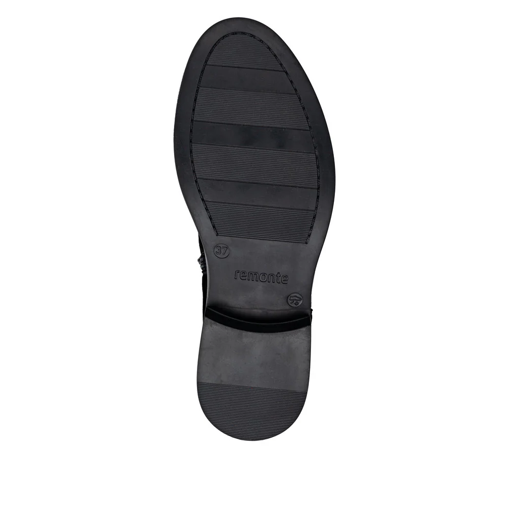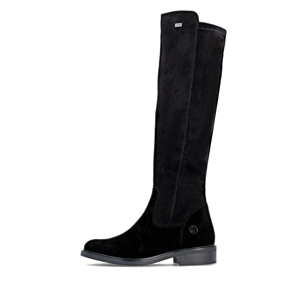 Maximum style, maximum comfort! These black remonte high boots have everything a comfortable shoe needs. The zipper allows for the shoe to be put on very quickly. The grippy and flexible sole and the padded and removable insole pamper the feet with allround comfort. The shoe has the Vario Shaft feature, which allows for an individually adjustable shaft width. Thanks to the water-repellent remonteTEX membrane, the best comfort is ensured even on wet and cold days. That means: endless strolling is no problem at all!