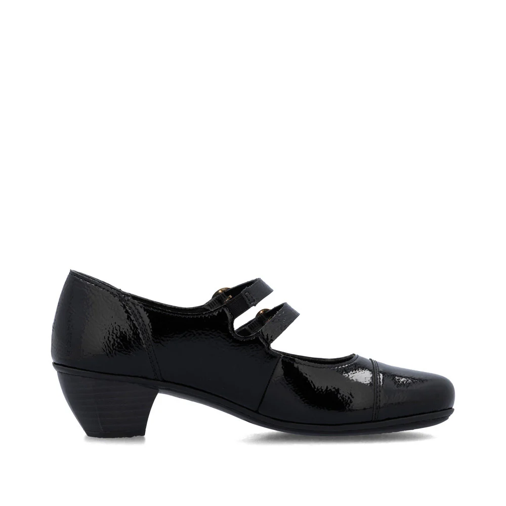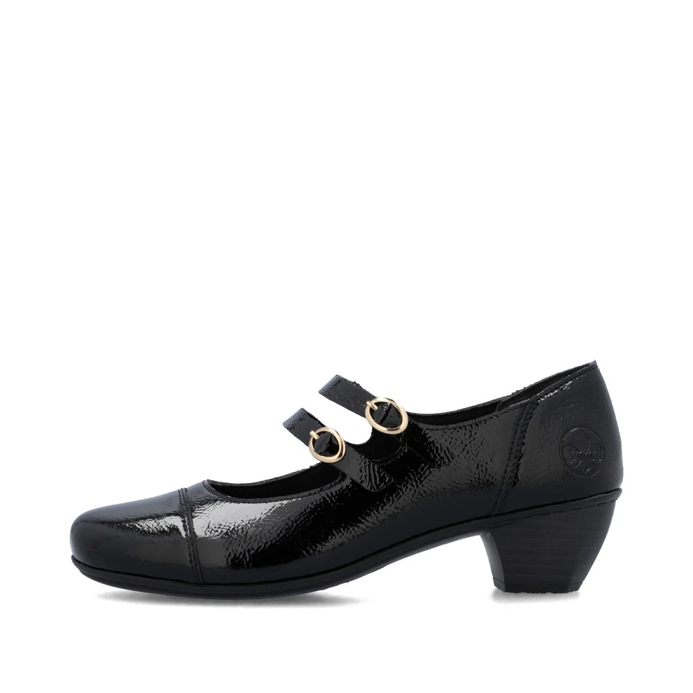 They follow you wherever you go! These black Rieker pumps made of smooth leather impress with a classic design and high comfort. Thanks to the stitched construction, the shoe is particularly stable and offers a flexible sole that adapts harmoniously to the foot. The pumps are closed by a buckle. The shock-absorbing and light sole with block heel offers lasting comfort - even on long days. Another plus is the extra soft cover sole. Simply top!