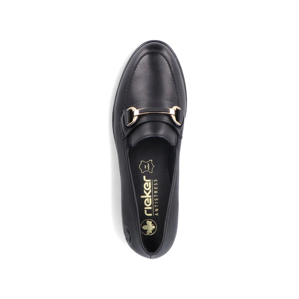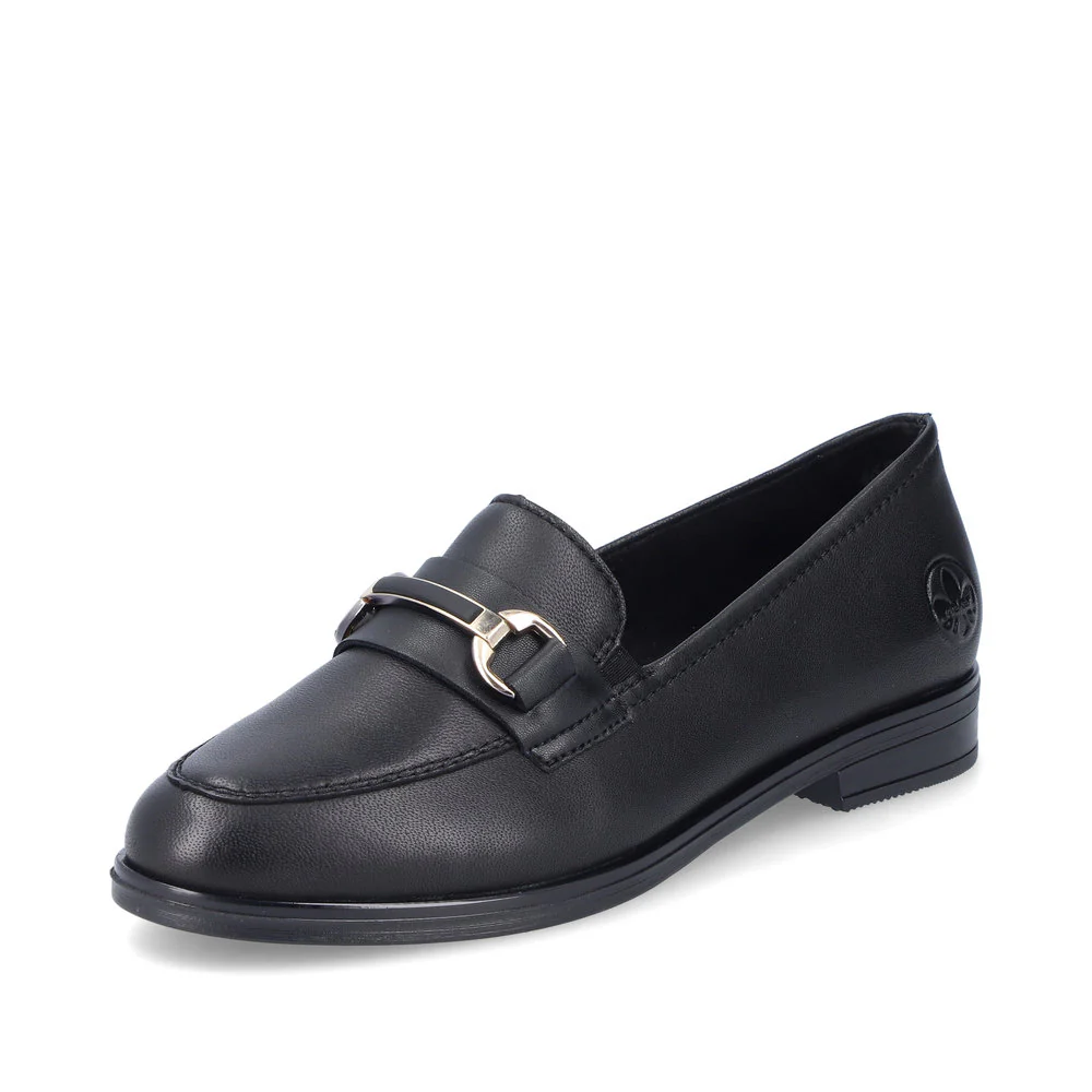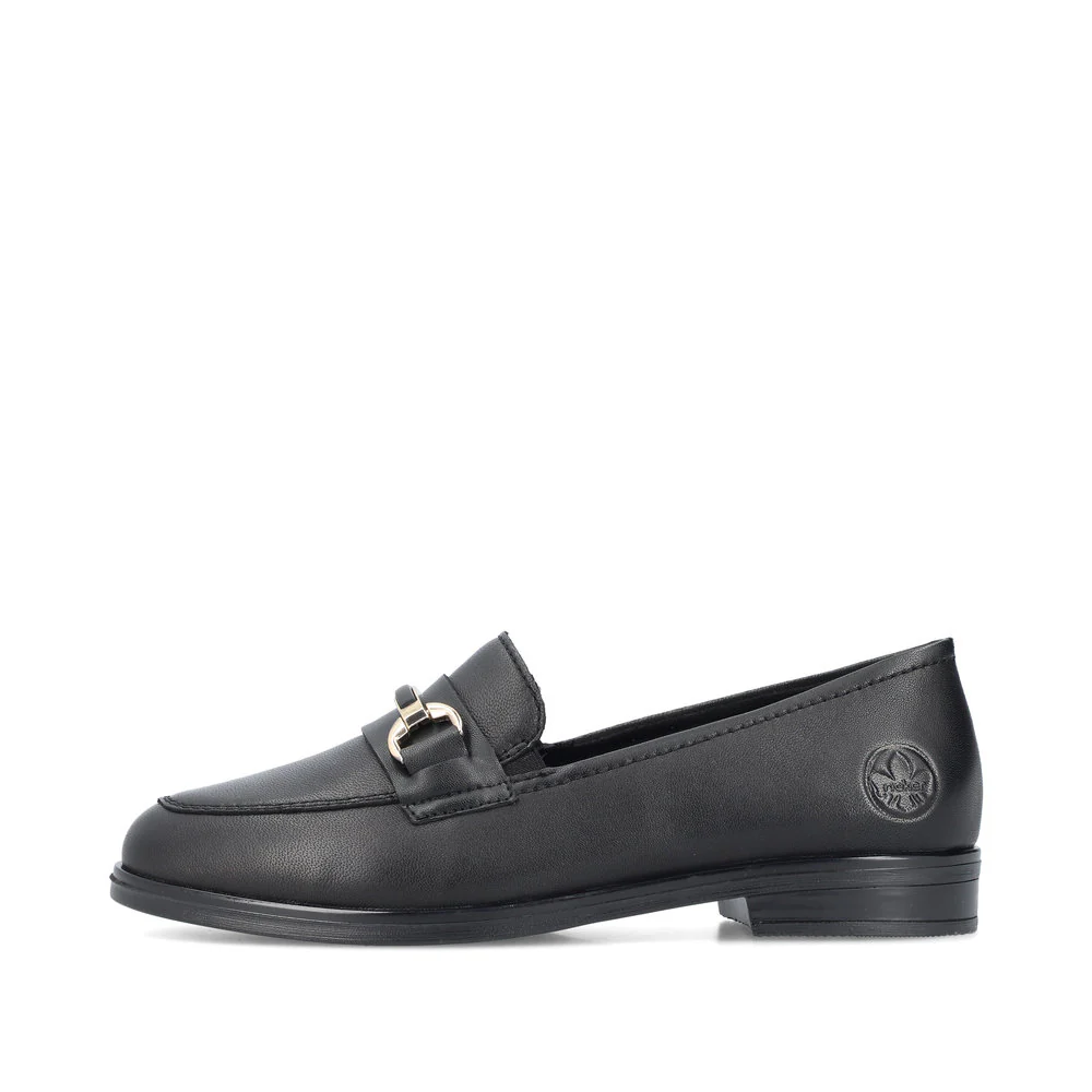 On the fashion radar! These black Rieker loafers made of smooth leather have it all: comfort, function and, of course, style. Putting on the shoe is facilitated by an elastic band. The fashionable decoration element is a nice detail. The sole is grippy and ensures a good traction at all times. On top of that, the extra soft cover sole provides an extra portion of wearing comfort. So let's get going!